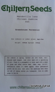 В этой статье я написала о мандевилле (дипладении). Дипладению я всегда хотела иметь у себя среди комнатных цветов. Я увидела в продаже семена дипладении с белыми цветками. Я выписала семена в английском интеренет - магазине.