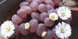 В этой статье я написала о группе т.н "живых камней", которые входят в многочисленное семейство Аизовые. В группу "живых камней; входит офтальмофиллум или конофитум. Офтальмофиллум относится к семейству Аизовые роду Конофитум. Видов офтальмофиллумов около 20. Это - листовые суккуленты. Родиной офтальмофиллумов считается Южная Африка. Офтальмофиллумы -миниатюрные суккуленты с высотой листьев до 3.5 см, ширина листьев до 2.5 см. Листья у офтальмофиллума парные, окрасом коричнево -зеленым. Листья ежегодно сменяются. Они сросшиеся наполовину или почти до верхушки. Кончики листьев полупрозрачные. Цветки до 3 см в диаметре. Окрас цветков белый, розоватый, красновато — сиреневые. Офтальмофиллумы хорошо образуют детки, образуя дернины.