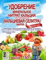 Кальциевая селитра – мелко кристаллический порошок белого окраса. Содержание в кальциевой селитре азота - около 17% и 19% кальция. Кальций помогает растениям усваивать азот. Удобрений выпускается в гранулированном виде и в виде кристаллического порошка. Кальциевая селитра выпускается с различными добавками других солей. Получают нитрат кальция из природного известняка. Недостаток - быстро впитывает влагу, поэтому хранение должно быть в упаковке, недопускающей попадание влаги.